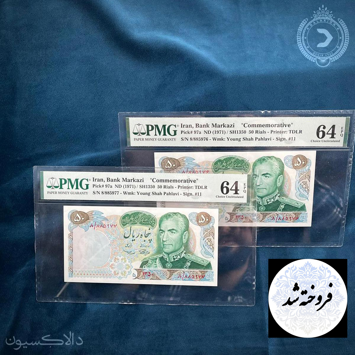 جفت اسکناس 50 ریال  سال 1350 هجری شمسی
